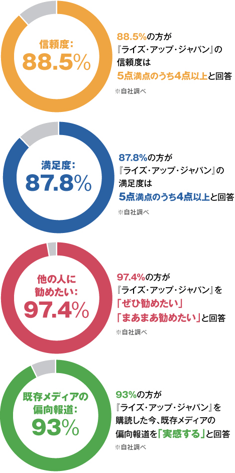 「ライズ・アップ・ジャパン」では現実の政治や経済の状況をしっかり見極めた上で「日本人としてどうしたいのか?」という、自分の頭で自由にモノを考えた質の良い情報が手に入ります。