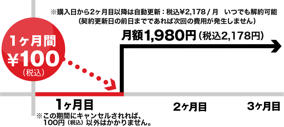 ※購入日から2ヶ月目以降は自動更新:税込¥2,178 / 月 いつでも解約可能(契約更新日の前日までであれば次回の費用が発生しません)